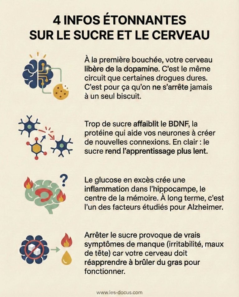 Les conséquences à long terme sont alarmantes. L’atrophie de l’hippocampe est l’un des premiers signes biologiques de la maladie d’Alzheimer. Il existe aujourd’hui une corrélation statistique et biologique forte entre une alimentation riche en sucres ajoutés et le déclin cognitif sénile.